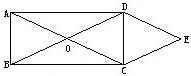 如图,长方形ABCD中,对角线AC,BD相交于O,DE∥AC,CE∥BD,那么△EDC可以看作是△________平移得到的,平移的距离是线段__________的长。