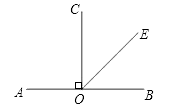 如图,OC⊥AB,OE为∠COB的平分线,∠AOE的度数为(    )。