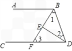 如图,∠ABD和∠BDC的平分线交于E,BE交CD于点F,∠1+∠2=90°.求证: