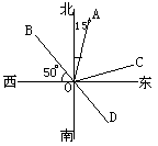 如图,OA的方向是北偏东15°,OB的方向是西偏北50°。
