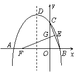 如图,抛物线y = ax2 + bx + 4与x轴的两个交点分别为A(-4,0)、B(2,0),与y轴交于点C,顶点为D.E(1,2)为线段BC的中点,BC的垂直平分线与x轴、y轴分别交于F、G.