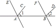 ∴∠EAB=∠EAC+∠1= °(等式的性质)同理可得,∠FBD+∠2= °