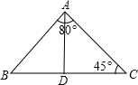 如图,在△ABC中,∠BAC=80°,∠C=45°,AD是△ABC的角平分线,那么∠ADB=