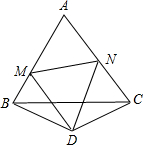 精英家教网如图,已知△ABC是等边三角形,△BDC是顶角∠BDC=120°的等腰三角形,以D为顶点作一个60°角它的两边分别交AB于M,交AC于N,连接MN,求证:MN=BM+CN.