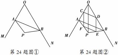 ,在∠MON的内部、△AOB的外部有一点P,且AP=BP,∠APB=120°.