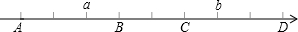 如图,若数轴上a的绝对值是b的绝对值的3倍,则数轴的原点在点________或点________.(填“A”、“B”“C”或“D”)