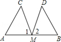 已知,M是AB的中点,MC=MD,∠1=∠2,若AC=8cm,求BD的长度.