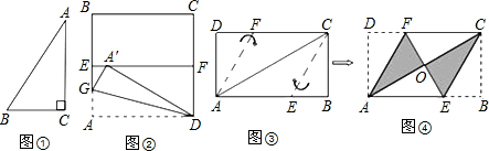 (2)如图②,四边形ABCD是一张边长为2的正方形纸片,E、F分别为AB、CD的中点,沿过点D的抓痕将纸片翻折,使点A落在EF上的点A′处,折痕交AE于点G,请运用(1)中的结论求∠ADG的度数和AG的长.