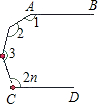 12、如图,AB∥CD,则∠1+∠2+∠3+…+∠2n=