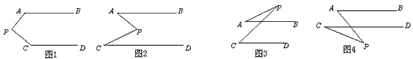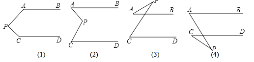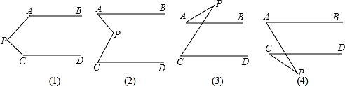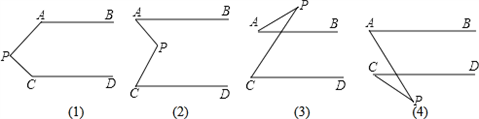 已知,AB∥CD,分别探讨四个图形中∠APC,∠PAB,∠PCD的关系.