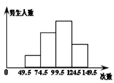 为了了解某校初一男生的体能的状况,从该校初一学生中抽取50名男生进行1分钟的跳绳测试,把所得数据整理后,画出频数分布直方图如图,已知从左到右第一,第二,第三,第四小组的频数的比为1∶3∶4∶2.
