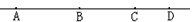 如图,四点A、B、C、D在一直线上,若AC=12cm,BD=8cm,且AD=3BC,则AB=(      ),BC=(      ),CD=(      )。