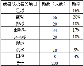 | 最喜欢收看的项目 | 频数(人数) | 频率 |