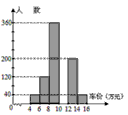 | 请你根据以上信息,回答下列问题: (1)根据①中信息可得,被调查消费者的年收入的众数是______万元; (2)请在图中补全这个频数分布直方图; (3)打算购买价格10万元以下小车的消费者人数占被调查消费者人数的百分比是_____。 |
