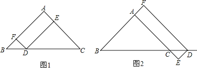 (3)当点D在线段BC的延长线上(如图2),其它条件不变,试猜想线段DE、DF之间的数量关系,请直接写出等式(不需证明).