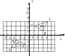 如图:三角形DEF是三角形ABC经过某种变换后得到的图形,分别写出A与点D,点B与点E,点C与点F的坐标,并观察它们的关系,如果三角形ABC中任一点M的坐标,那么它的对应点N的坐标是什么?