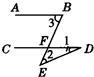 12、如图,若∠3=∠1+∠2,则AB与CD的位置关系是