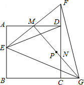 如图,正方形ABCD的边长为2,E为线段AB上一点,点M为边AD的中点,EM的延长线与CD的延长线交于点F,MG⊥EF,交CD于N,交BC的延长线于G,点P是MG的中点.连接EG、FG.下列结论:①当点E为边AB的中点时,S△EFG=5;②MG=EF;③当AE=