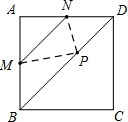 如图,正方形ABCD的边长为2,M、N分别为AB、AD的中点,在对角线BD上找一点P,使△MNP的周长最小,则此时PM+PN=