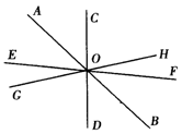 (2)四条直线AB,CD,EF,GH两两相交,图形中共有几对对顶角(平角除外)?几对邻补角?