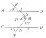 16、如图,直线AB∥CD,∠EFA=30°,∠FGH=90°,∠HMN=30°,∠CNP=50°,则∠GHM的大小是