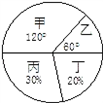 精英家教网根据图中提供信息. (1)整个圆代表540人,另求甲、乙、丙、丁所代表的人数.(2)画出条形统计图.