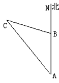 如图所示,上午8时,一条船从A处出发,以15海里/时的速度向正北方向航行,9时45分到达B处,从A处测得灯塔C在其北偏西26°,从B处测得灯塔C在其北偏西52°,求B处到灯塔C的距离.