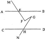 4、如图,已知AB∥CD,MF⊥FG,∠AEM=50°,∠NHC=55°.则∠FGH的度数为