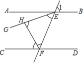 如图,AB∥CD,EF分别交AB,CD于E,F,∠1=60°,∠GEF=40°,FH平分∠EFC,则∠EFC=________.