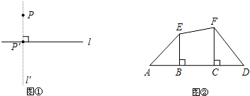 如图①,已知平面内一点P与一直线l,如果过点P作直线l′⊥l,垂足为P′,那么垂足P′叫做点P在直线l上的射影;如果线段PQ的两个端点P和Q在直线l上的射影分别为点P′和Q′,那么线段P′Q′叫做线段PQ在直线l上的射影.