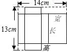 精英家教网某长方体包装盒的展开图如图所示.如果长方体盒子的长比宽多4cm,求这个包装盒的体积.