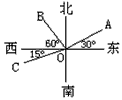 A.OA的方向是北偏东30° B.OB的方向是北偏西60°