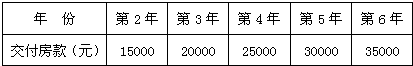 | 某居民小区按照分期付款的方式售房,购房时,首期(第1年)付款30000元,以后每年付款如下表: | ||||||||||||