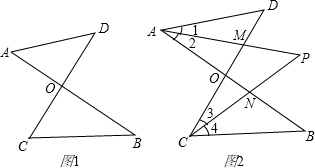 已知:如图1,线段AB、CD相交于点O,连结AD、CB,我们把形如图1的图形称之为“8字形”.试解答下列问题: