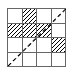 把图中的某两个小方格涂上阴影,使整个图形是以虚线为对称轴的轴对称图形。