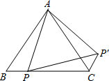 如图,△ABC中,AB=AC,∠BAC=70°,P为BC上一点,将△ABP绕点A按逆时针方向旋转到△ACP′位置,则∠AP′P的度数为