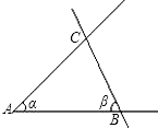 如图,用字母A、B、C表示∠α、∠β.则∠α_______,∠β=_________