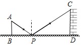 如图,小明设计用手电来测量某古城墙高度的示意图,点P处放一水平的平面镜,光线从点A出发经平面镜反射后刚好射到古城墙CD的顶端C处,已知AB⊥BD,CD⊥BD,且测得AB=1.2米,BP=1.8米,PD=12米,那么该古城墙的高度是__米.![]()
