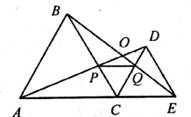 如下图,C为线段AE上一动点(不与点A,E重合),在AE同侧分别作正三角形ABC和正三角形CDE,AD与BE交于点O,AD与BC交于点P,BE与CD交于点Q,连结PQ。以下五个结论: