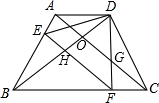 如图,在等腰梯形ABCD中,AD∥BC,AB=DC,对角线AC、BD相交于O,折叠梯形ABCD,使点B与点D重合,EF为折痕,交BD于H,且DF⊥BC,DF交AC于G,下列结论:①△BFD为等腰直角三角形;②DE平分∠ADB;③EF∥AC;④S梯形ABCD=
