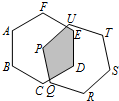 如图,两个全等的正六边形ABCDEF、PQRSTU,其中点P位于正六边形ABCDEF的中心,如果它们的面积均为1,求阴影部分的面积.