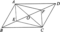 如图,在□ABCD中,AC、BD交于点O,∠ABC=60°,AB=1,E、F分别是线段BO、DO上不与点O重合的点,且BE=DF.