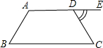 如图,在等腰梯形ABCD中,延长AD到E,若∠B=58 °,则∠EDC=________。