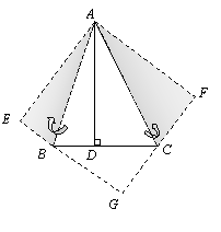 (1)分别以AB、AC为对称轴,画出△ABD、△ACD的轴对称图形,D点的对称点为E、F,延长EB、FC相交于G点,证明四边形AEGF是正方形;