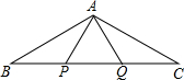 已知:如图,P、Q是△ABC边BC上两点,且BP=PQ=QC=AP=AQ,求∠BAC的度数.