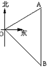 精英家教网如图,从位于O处的某海防哨所发现在它的北偏东60°的方向,相距600米的A处有一艘快艇正在向正南方向航行,经过若干时间快艇要到达哨所东南方向的B处,则A、B间的距离是(  )米.