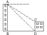 如图,两建筑物水平距离为32米,从点A测得对点C的俯角为30o,对点D的俯角为45o,则建筑物CD的高约为( ).