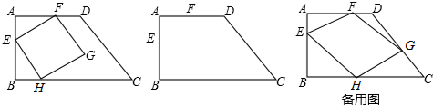 如图,梯形ABCD中AD∥BC,AB⊥CB,AB=6cm,BC=14cm,AD=8cm,点E为AB上一点,且AE=2cm;点F为AD上一动点,以EF为边作菱形EFGH,且点H落在边BC上,点G在梯形ABCD的内部或边CD上,设AF=x