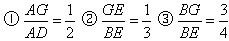 ①AG:AD=1:2; ②GE:BE=1:3 ③BE:BG=4:3,