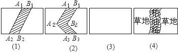 图形的操作过程如下(本题中四个矩形的水平方向的边长均为a,竖直方向的边长均为b)在图①中,将线段A1A2向右平移1个单位长度到B1B2,得到封闭图形A1A2B2B1(即阴影部分);在图②中,将折线A1A2A3(其中A2叫做折线A1A2A3的一个“折点”)向右平移1个单位长度到B1B2B3,得到封闭图形A1A2A2B3B2B1(即阴影部分)